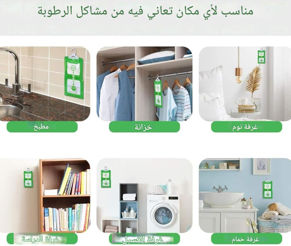 امتصاص فعال للرطوبة الزائدة التي قد تتسبب في تلف الملابس والأقمشة
